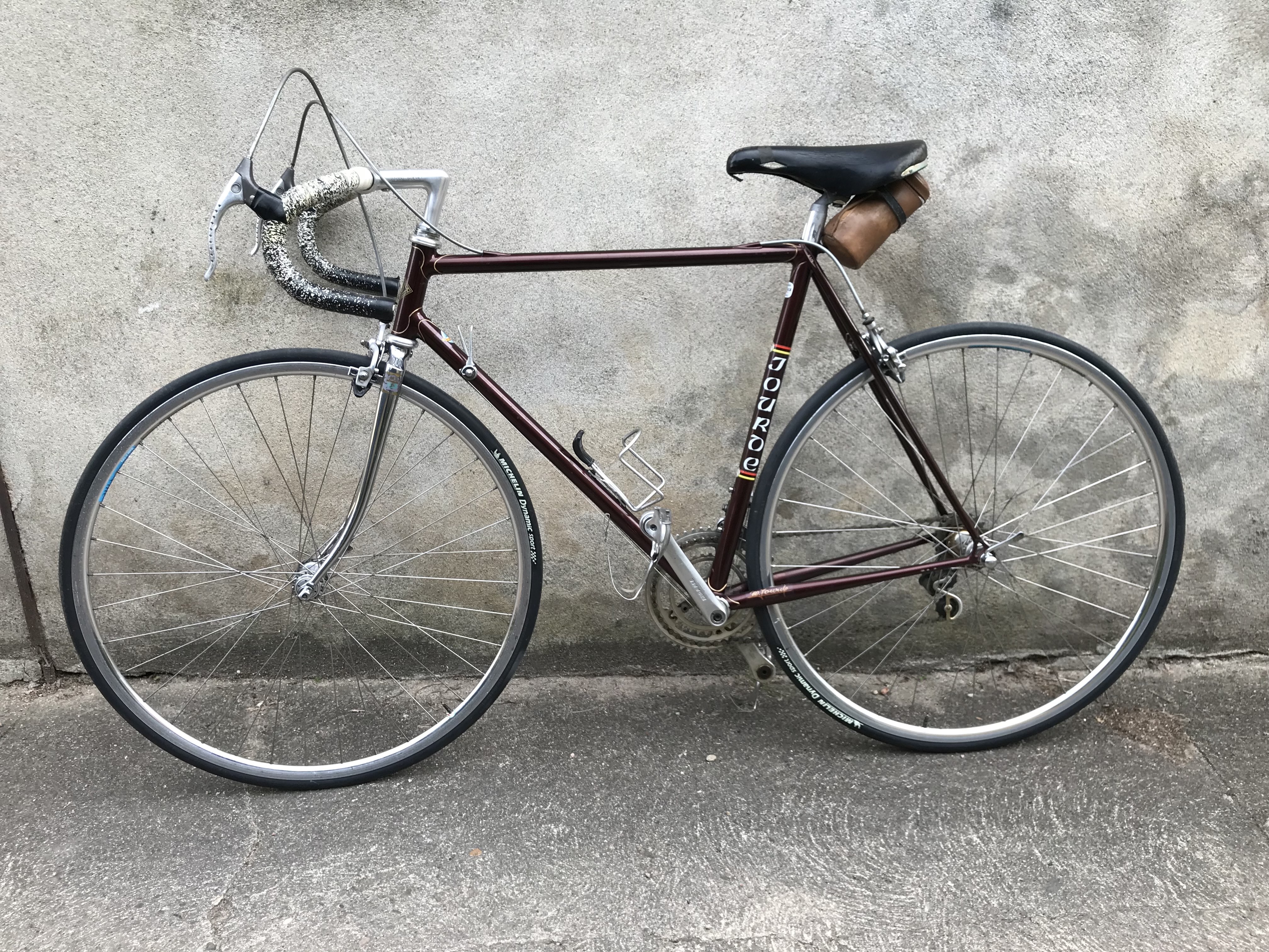 Bon voilà, un vélo de plus sur lequel j'ai craqué… la couleur, les détails, l'état, la finition, l'équipement, bien que disparate avec des belles pièces et originales, un vélo qu'il faut prendre le temps de détailler.