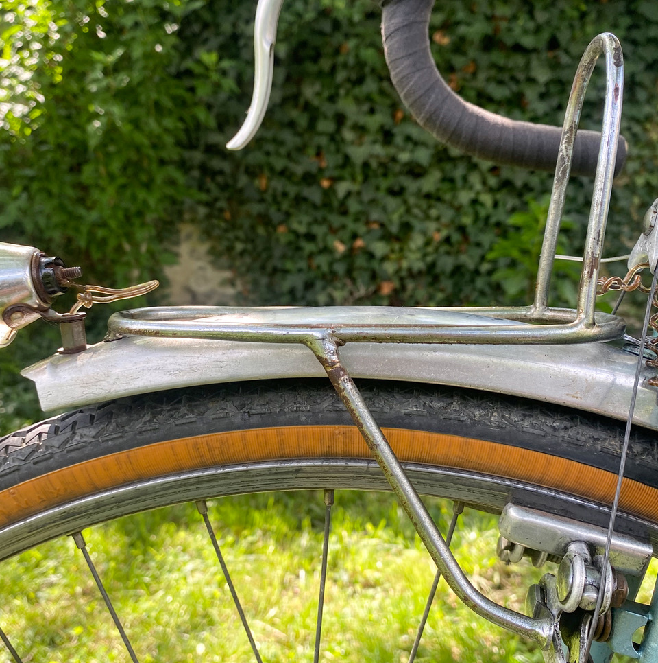 Une belle randonneuse des années 50 en tubes FOBUR, à l'origine noir le vélo à été modernisé dans les années 70. En roues de 650, moyeux MAXICAR jantes MAVIC Critérium. L'ancienne propriétaire m'a précisée que c'était un CHARLES SABLIERE.