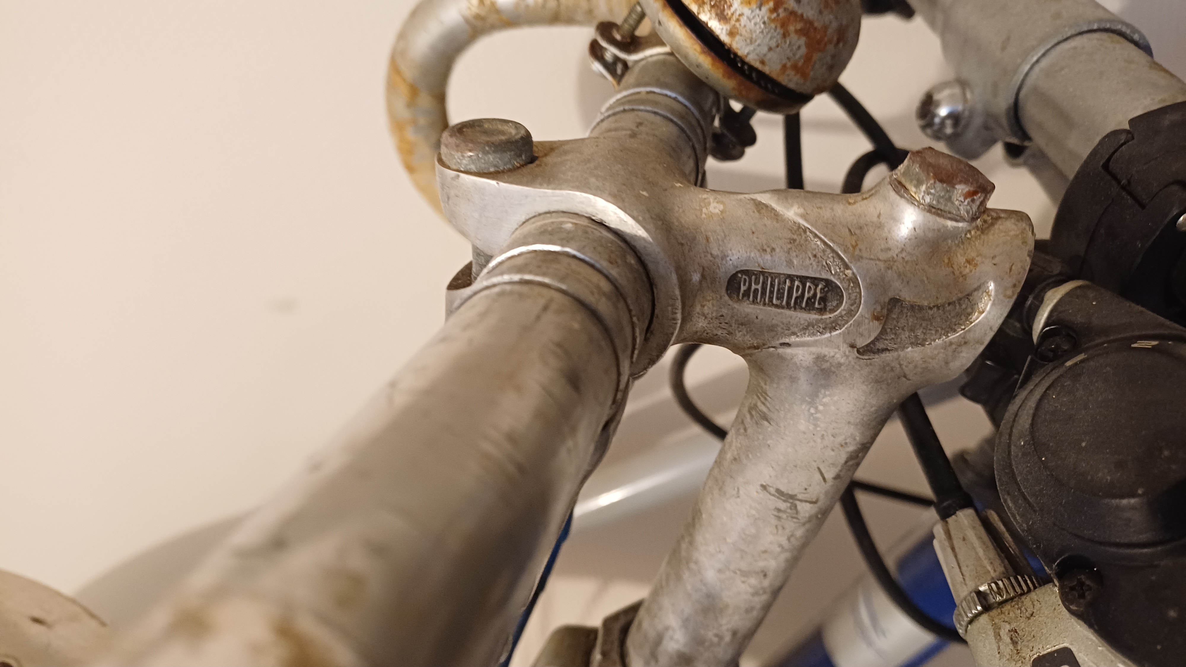 Après la base est plutôt saine et complète, il y aura certainement les pièces d'usages à changer, mais la peinture est correcte et peut donner un résultat vintage avec une belle patine. C'est un petit cadre pour quelqu'un 1,70 maxi, tige de selle et potence sont ici beaucoup trop sorties c'est dangereux !!!