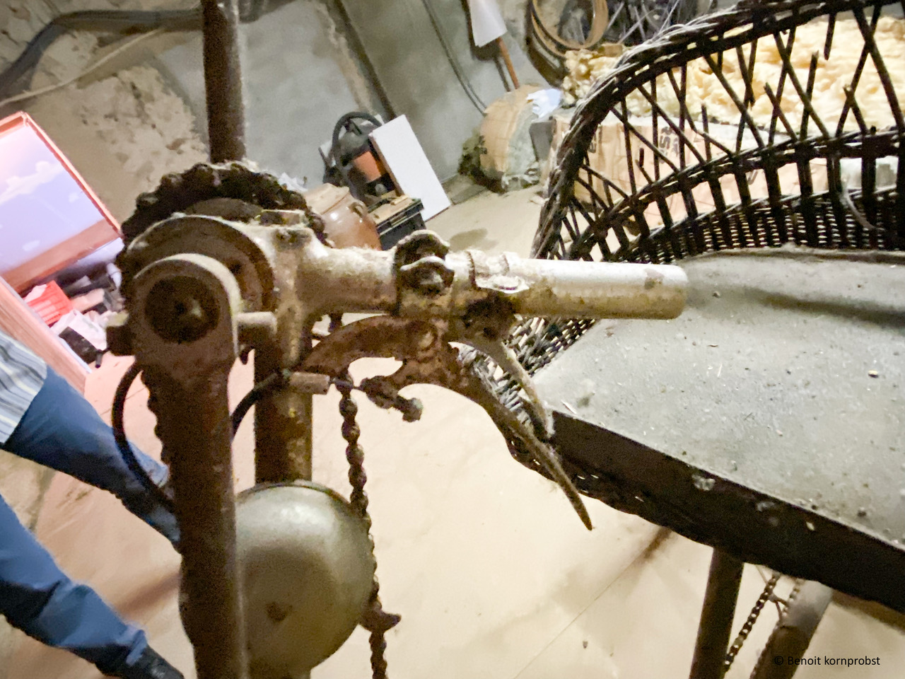 La particularité de ce modèle situé autour des années 1920 est la double transmission pieds et mains. Il était utilisé par les mutilés de la guerre 14/18. Ce modèle semble complet.