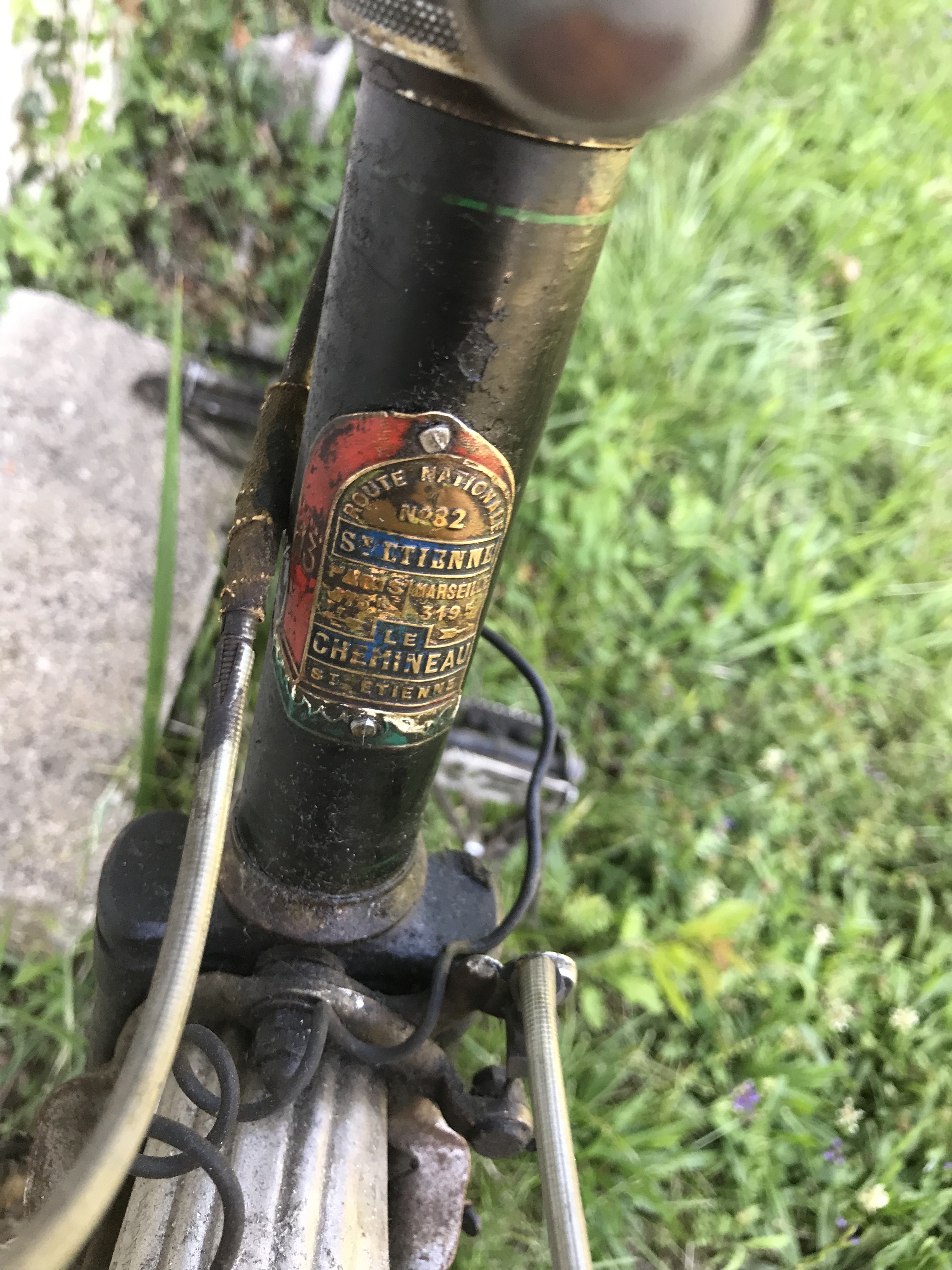 Récupère chez un voisin ce velo Le Chemineau. Il autait fait des courses dans les années 30/40 puis aurait fait de la randonnée avant d etre modifie et utilise pour des déplacements en ville.