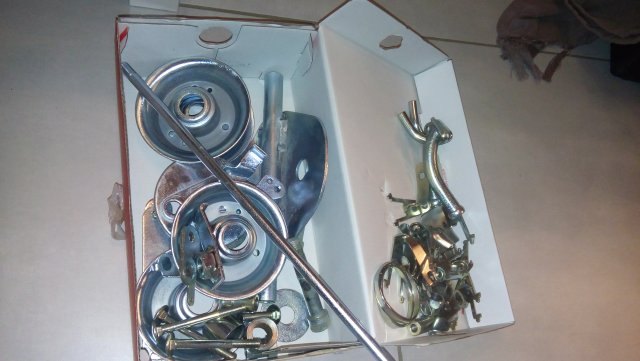 Pièces récupérées du zingage, je pense que le bain du zingueur a un problème car mes pièces ont des reflets jaune, malgré un deuxième passage (avec un décapage entre 2) le problème persiste. Des amis m'indiquent qu'ils pensent que le bain est pollué, mais le zingueur ne veut rien entendre, pour le surf ça ne se verra pas car toutes les pièces viennent du même bain, et on voit peu d'éléments zingués