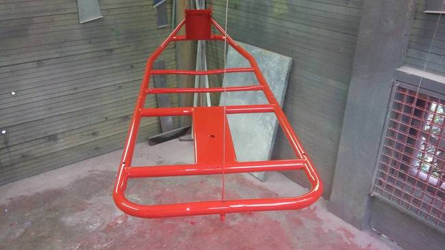 L'arceau principal trop attaqué a orienté la restauration sur une peinture métallisée vernie car pas rechromable.
