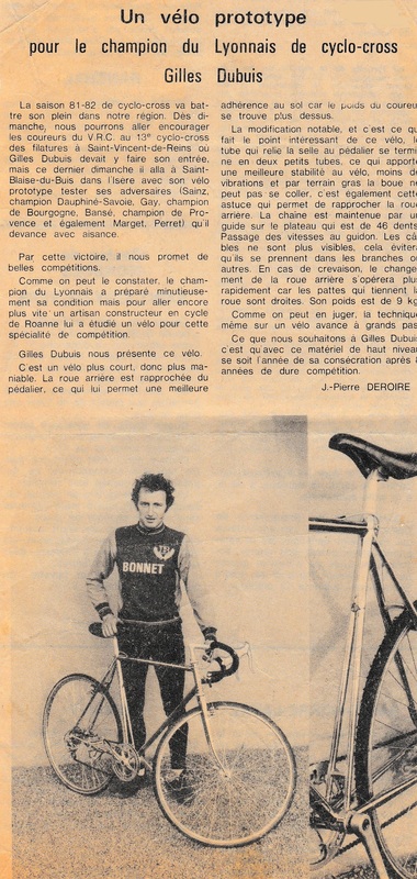 Gilles Dubuis courait donc encore sur un acier, Bernard Gay alors marchand de cycles à Marcigny roulait lui sur un Alan, tout comme bon nombre de spécialistes qui étaient en train d'adopter ce cadre italien.