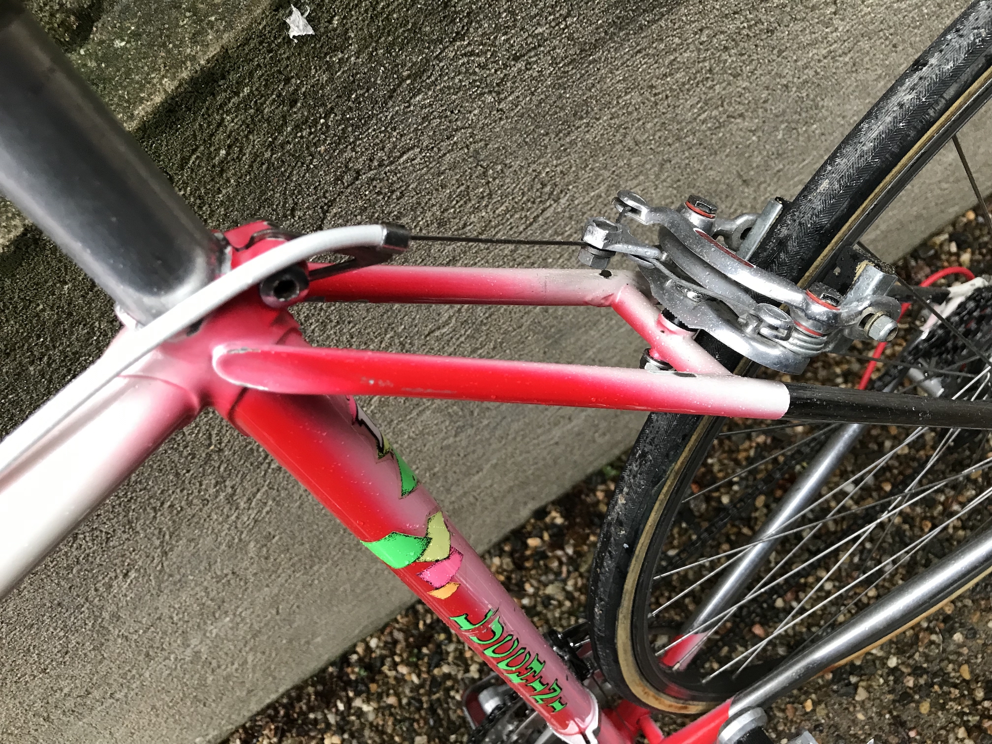 Hello… tu as plus qu'à trouver des étriers Mavic et un jeu de direction. Les Dia comp sur ce vélo pas top, de plus 1 patin avant monté à l'envers, attention au freinage !!