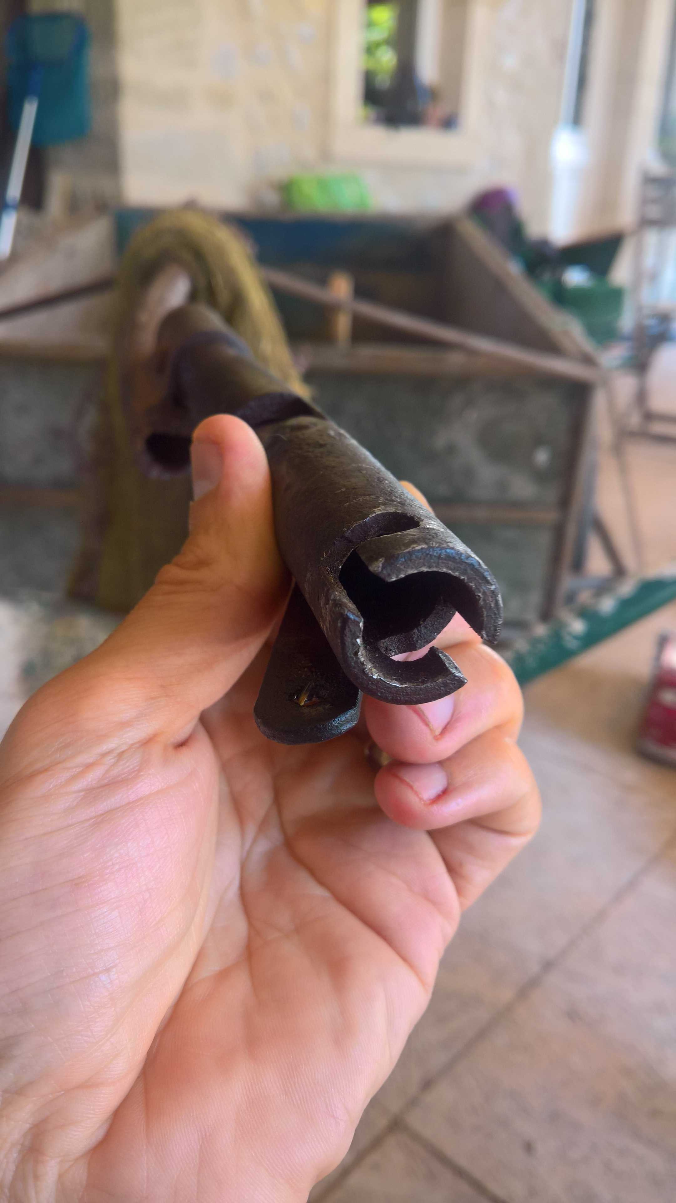 J'ai retiré le petit téton de ce cylindre et ai percé de part en part à l'emplacement du téton afin de fixer la remorque avec une goupille de ce type : https://www.rubig.com/fileadmin/user_upload/ST/Datenblaetter/Klappstecker/Franzoesisch/Dbl_Rohr-Klappstecker_F.pdf