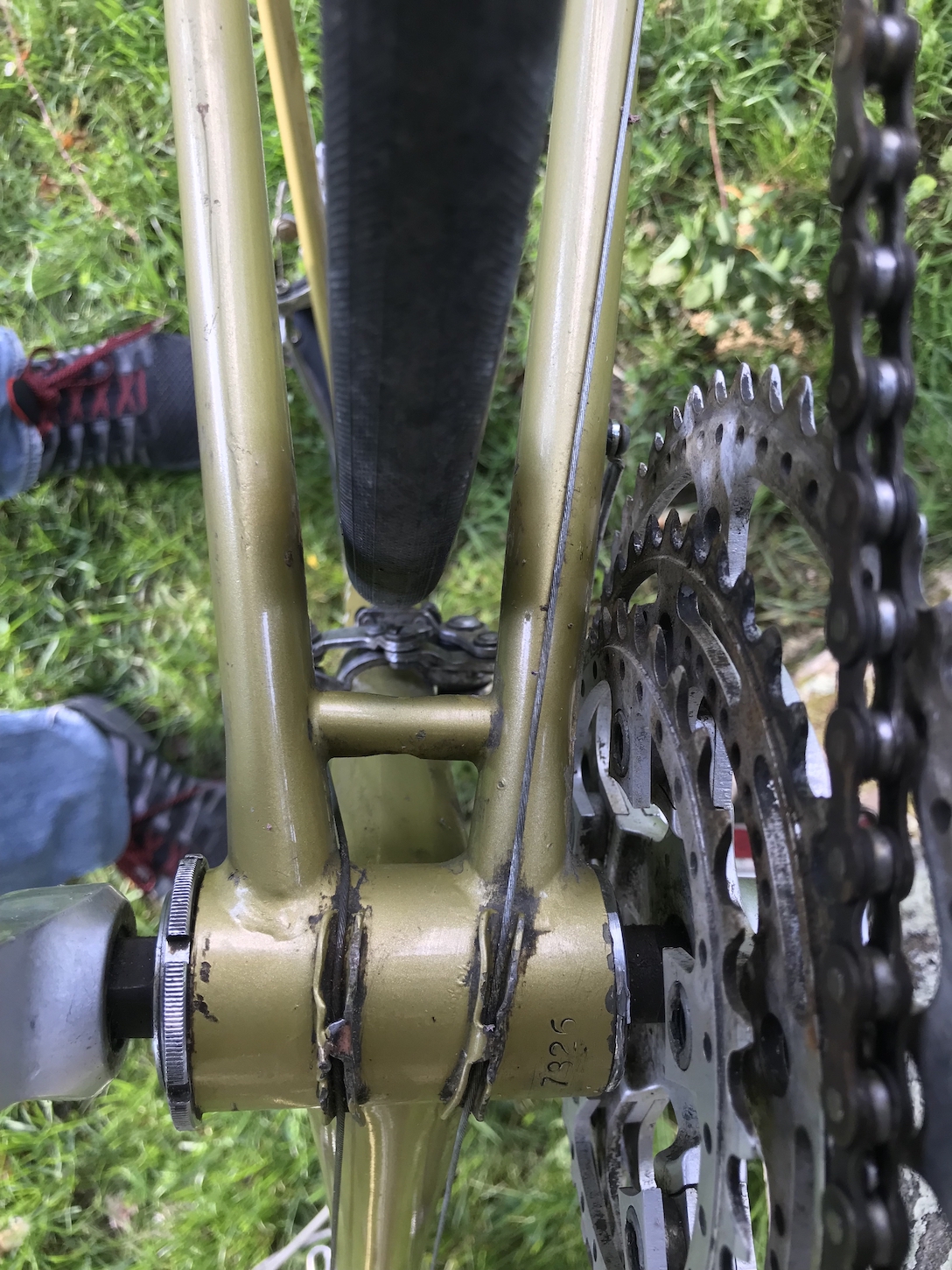 Dernier achat en date au Vélocipédia 2019, un Busset comme je les affectionne, pas bling-bling tout dans le détail, malheureusement une tige de selle mal adaptée a fait un peu de dégât… mais bon je suis pas à mon premier cadre fissuré 😉.