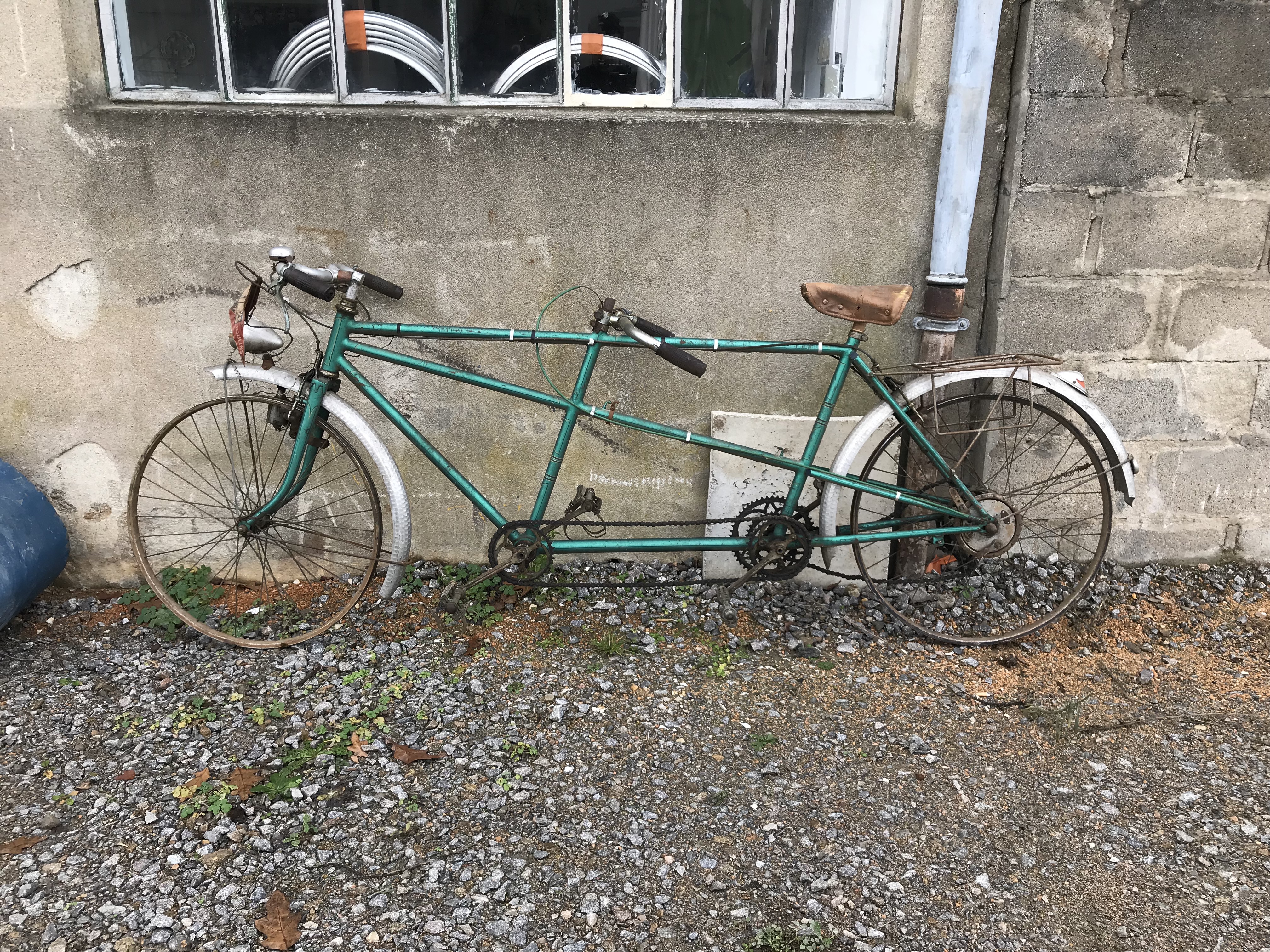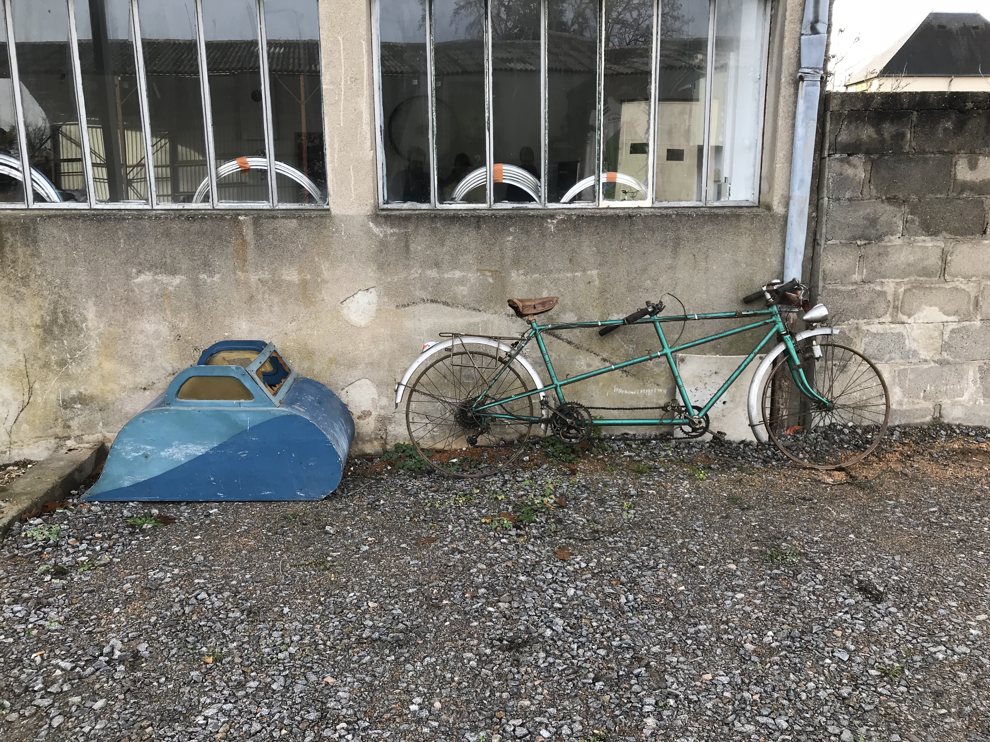 nous vous présentons ici un couple tandem charette enfant, fraichement décroché d'un grenier où il pendait depuis plus de 40 ans… malheureusement il manque la remorque qui portait la coque fabriquée artisanalement.