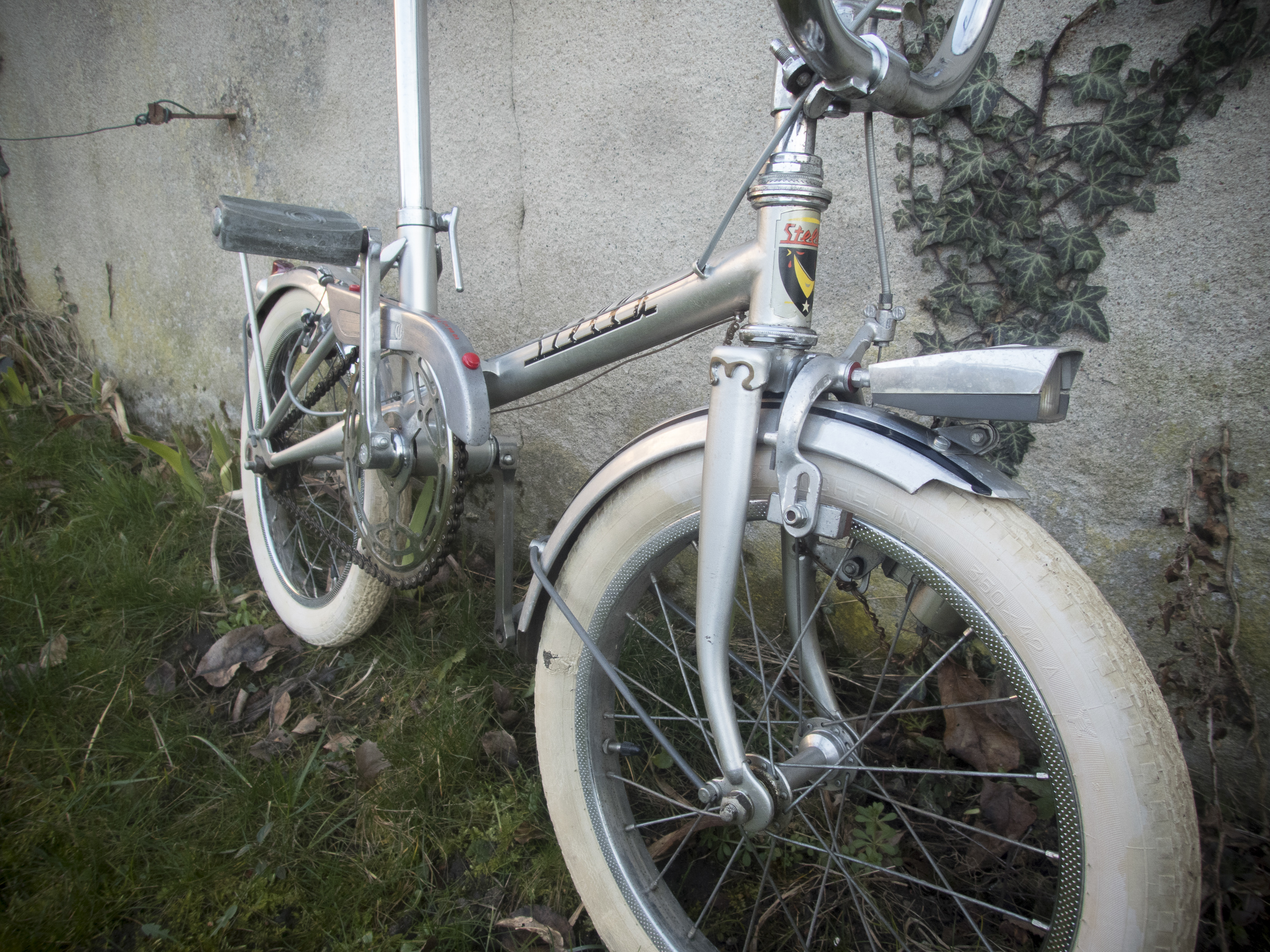 un mini vélo Stella Poketby première série que je date de 1964, d'après le numéro de série. Il est en excellent état avec ses pédales et poignées d'origine.